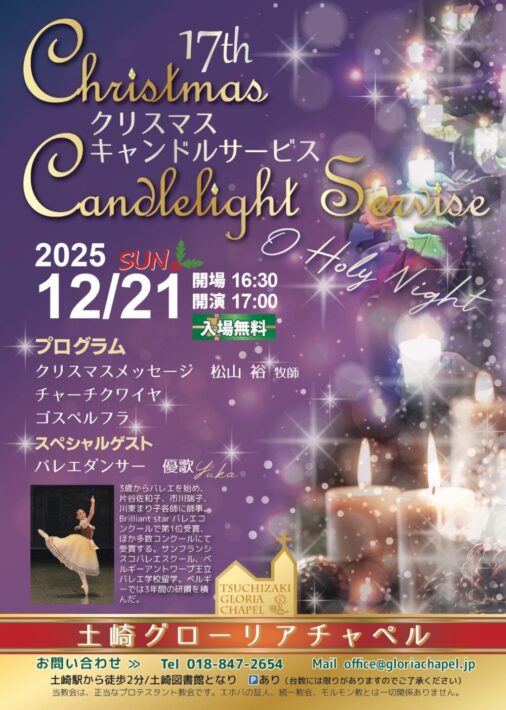 ほかに、チャーチクワイヤによる賛美や、秋田県では唯一のゴスペルフラダンス、クリスマスメッセージやキャンドルリレーなどを通して